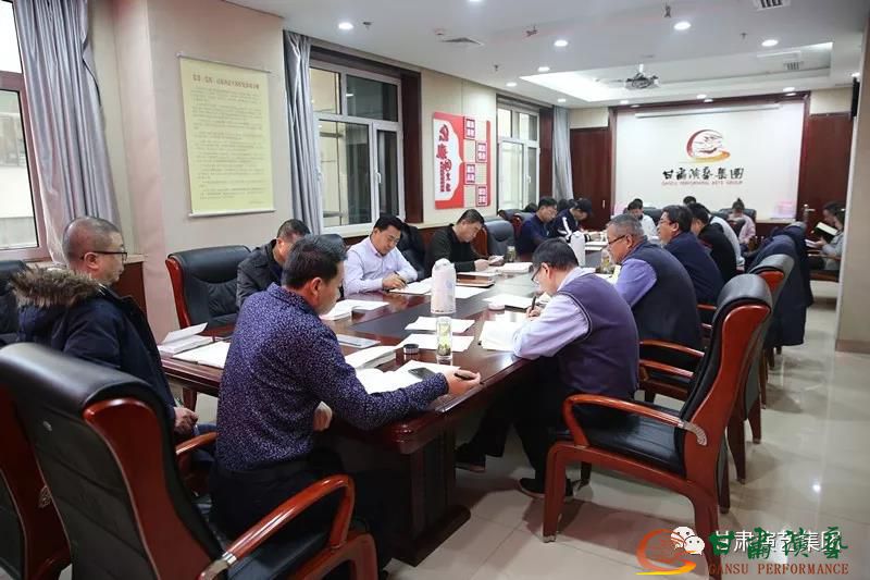 12月13日上午,甘肅演藝集團(tuán)黨委召開2019年度第十六次中心組學(xué)習(xí),專題學(xué)習(xí)研討黨的十九屆四中全會(huì)精神。甘肅演藝集團(tuán)黨委書記、董事長陳其銀主持會(huì)議,集團(tuán)黨委委員、集團(tuán)機(jī)關(guān)全體員工、直屬各單位負(fù)責(zé)人參加學(xué)習(xí)。