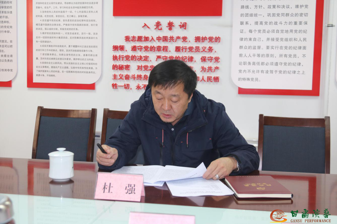 2021年3月11日上午,甘肅演藝集團舞美中心黨支部召開2021年第一季度黨課宣講暨黨史學習教育研討會,支部全體黨員參加會議,積極分子列席會議,會議由黨支部副書記杜強同志主持。