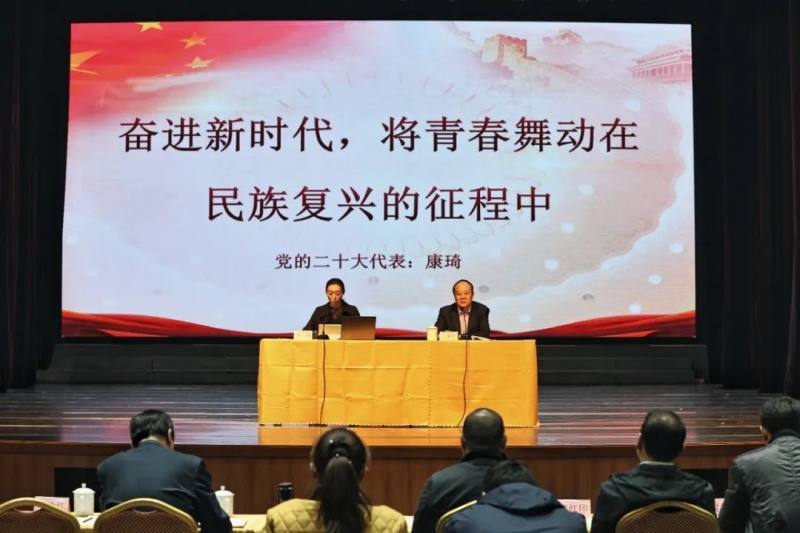 輔導(dǎo)報(bào)告會(huì)上,康琦以“奮進(jìn)新時(shí)代,將青春舞動(dòng)在民族復(fù)興的征程中”為題,從高舉中國(guó)特色社會(huì)主義偉大旗幟,為全面建設(shè)社會(huì)主義現(xiàn)代化國(guó)家而團(tuán)結(jié)奮斗和推進(jìn)文化自信自強(qiáng)、鑄就社會(huì)主義文化新輝煌兩個(gè)方面進(jìn)行了系統(tǒng)宣講,詳細(xì)生動(dòng)地闡釋了黨的二十大的豐富內(nèi)涵和重大意義,并結(jié)合自身工作實(shí)際,就如何落實(shí)黨的二十大報(bào)告中對(duì)文藝工作的新部署新要求作了分享。