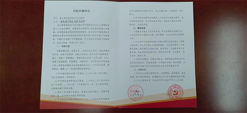 參觀結(jié)束后,集團機關(guān)黨支部和周家莊社區(qū)黨委舉行了共駐共建協(xié)議簽約儀式。