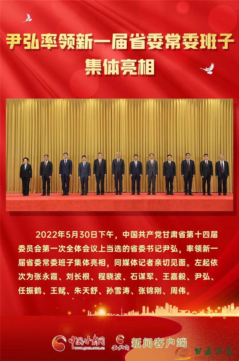 尹弘逐一介紹了新一屆省委常委。他說,接過歷史的接力棒,我們深感使命光榮、重任在肩,將把做到“兩個維護(hù)”作為最高政治要求和最高政治紀(jì)律,堅持用習(xí)近平新時代中國特色社會主義思想統(tǒng)領(lǐng)一切工作,堅持以習(xí)近平總書記指引的方向為方向,完整準(zhǔn)確、與時俱進(jìn)貫徹習(xí)近平總書記對甘肅重要指示要求,在實現(xiàn)習(xí)近平總書記賦予的使命任務(wù)上不斷展現(xiàn)新氣象新作為。我們將樹牢正確的政績觀和強烈的事業(yè)心,知重負(fù)重、恪盡職守,夙夜在公、鞠躬盡瘁,盡心竭力辦好甘肅的事情,不辱使命,不負(fù)時代。我們將始終把人民放在心中最高位置,永葆公仆本色,抱著俯首甘為孺子牛的情懷,扎實踐行黨的根本宗旨,全心全意為人民服務(wù),努力讓全省人民生活更加富裕、更有品質(zhì)、更有尊嚴(yán)。