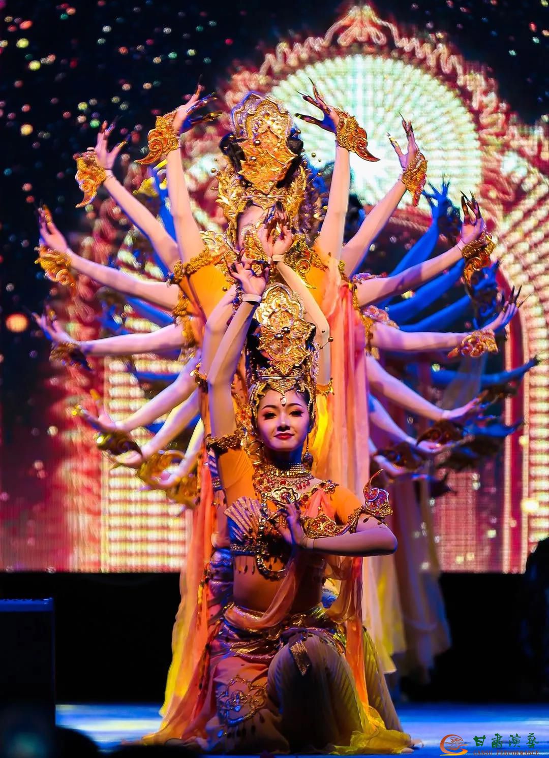 省委宣傳部副部長、省文化和旅游廳黨組書記、廳長陳衛(wèi)中,甘肅演藝集團(tuán)黨委書記、董事長陳其銀,黨委副書記、總經(jīng)理劉小承,省文化和旅游廳副廳長萬學(xué)科,甘肅演藝集團(tuán)領(lǐng)導(dǎo)班子和部分優(yōu)秀志愿者,各窗口行業(yè)代表,金城各界人士到現(xiàn)場觀看演出。劇目融匯舞蹈、情景表演、樂器演奏等多種藝術(shù)形式,充分結(jié)合多彩絲路的藝術(shù)底蘊(yùn),將神秘大盛敦煌的藝術(shù)神韻呈現(xiàn)在廣大觀眾面前。
