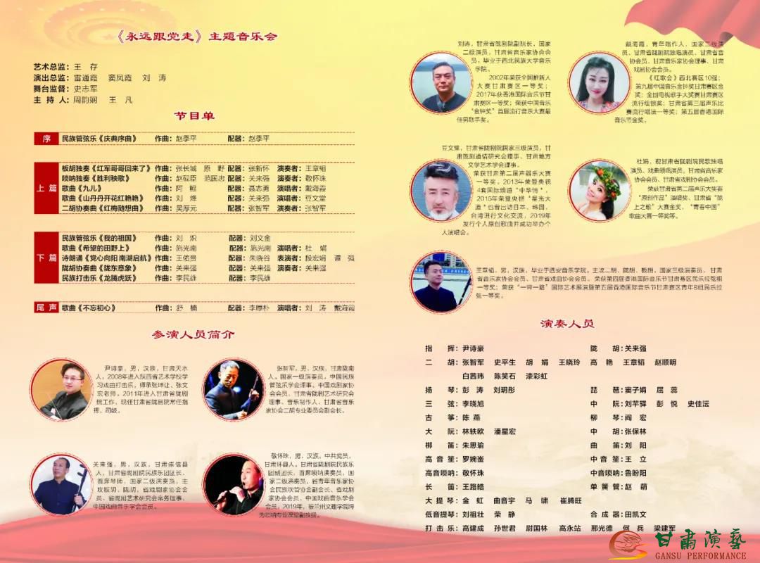 本屆黃河之濱藝術(shù)節(jié)由省委宣傳部、省文旅廳主辦,甘肅演藝集團、蘭州市委宣傳部、蘭州市文旅局承辦,蘭州黃河風(fēng)情線大景區(qū)管委會協(xié)辦,以“永遠跟黨走”為主題,著力營造學(xué)習(xí)宣傳貫徹習(xí)近平總書記在中國共產(chǎn)黨成立100周年大會重要講話濃厚氛圍,突出紅色精神,凸顯甘肅特色,聚焦“黃河之濱也很美”文化新名片,集中推出一批優(yōu)秀紅色舞臺作品,展示近年來甘肅文藝創(chuàng)作的豐碩成果和文藝工作者的精神風(fēng)貌。