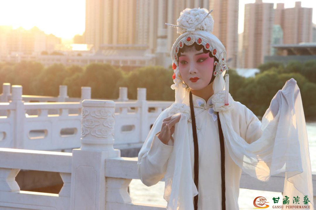 演出開始之前,甘肅演藝集團秦腔藝術(shù)劇院在“黃河之濱”觀景臺開展了快閃演出活動,由優(yōu)秀青年演員楊昕艷表演了秦腔經(jīng)典劇目《游龜山?藏舟》選段。