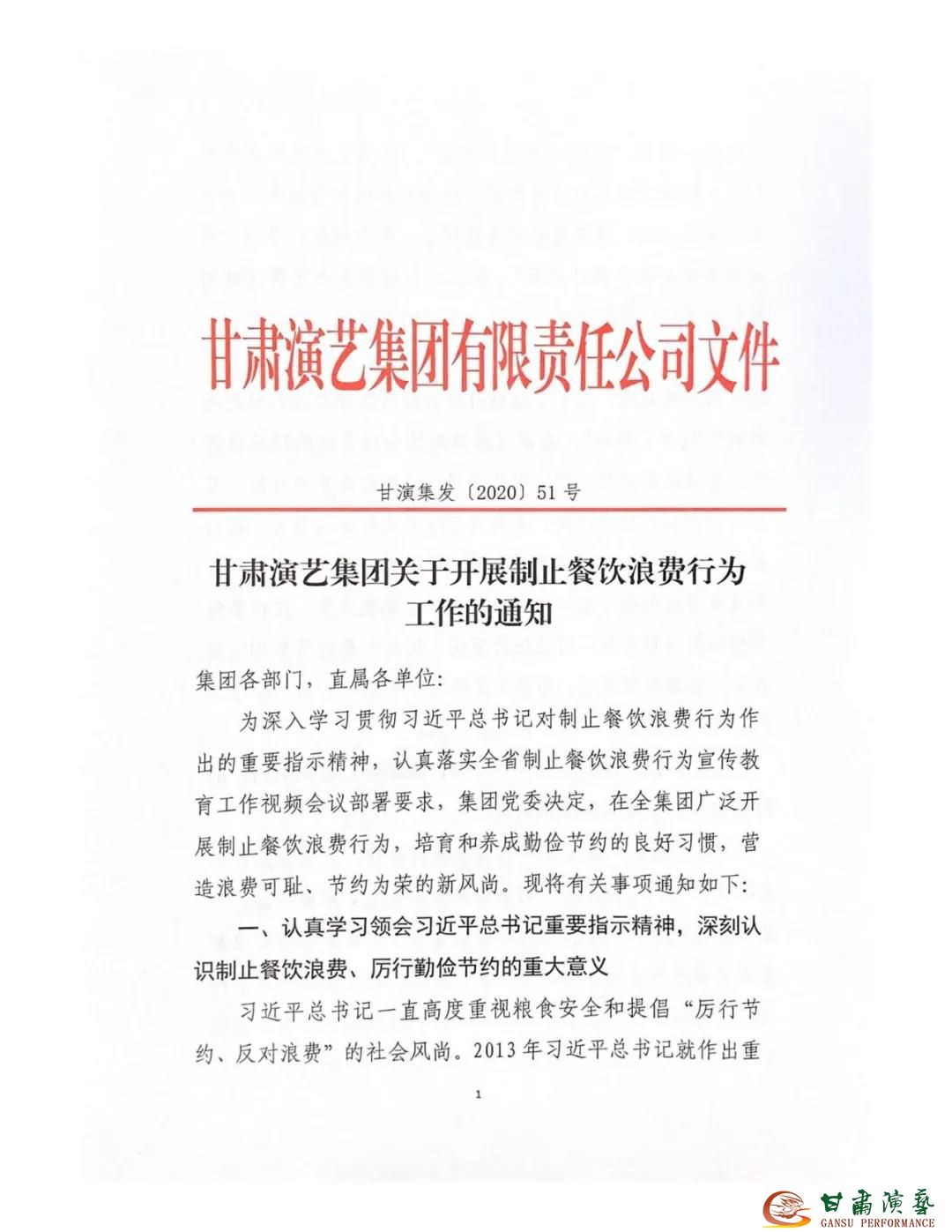 甘肅演藝集團(tuán)關(guān)于開展制止餐飲浪費(fèi)行為工作的通知