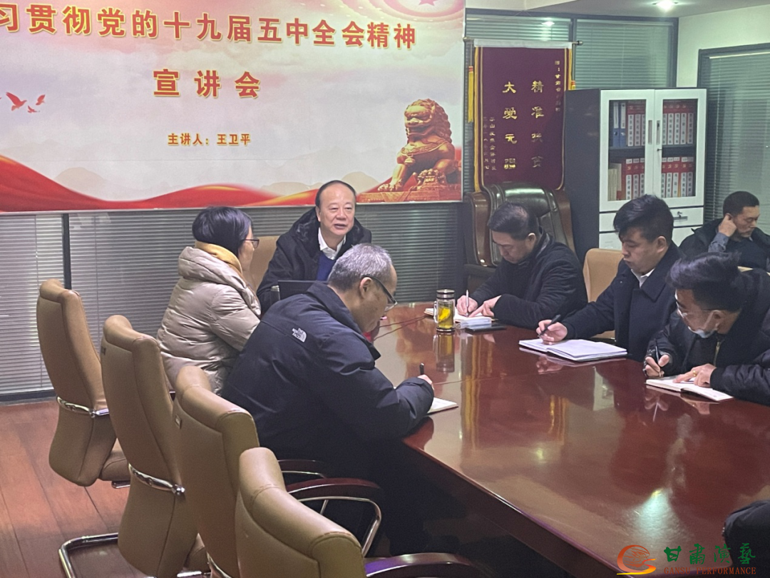 為了推動學(xué)習(xí)貫徹黨的十九屆五中全會精神持續(xù)深入,積極落實甘肅演藝集團(tuán)任務(wù)部署。2020年12月28日上午,甘肅演藝集團(tuán)黨委委員、副總經(jīng)理王衛(wèi)平同志到甘肅演藝集團(tuán)秦腔藝術(shù)劇院,為院團(tuán)全體黨員和中層干部進(jìn)行了十九屆五中全會主題黨課的宣講。會議由甘肅演藝集團(tuán)秦腔藝術(shù)劇院黨總支書記、院長崔華功主持,院團(tuán)領(lǐng)導(dǎo)班子和全體黨員干部、入黨積極分子等近30人參加了會議。