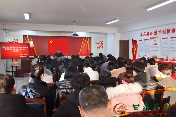 根據(jù)集團黨委關(guān)于學(xué)習(xí)貫徹黨的十九屆五中全會精神的任務(wù)部署,甘肅演藝集團黨委副書記、總經(jīng)理劉小承同志于2020年12月23日上午來到了甘肅演藝集團敦煌藝術(shù)團,為院團全體黨員和業(yè)務(wù)骨干進行了十九屆五中全會主題黨課宣講。會議由甘肅演藝集團敦煌藝術(shù)團黨總支書記、團長吳雪林主持。