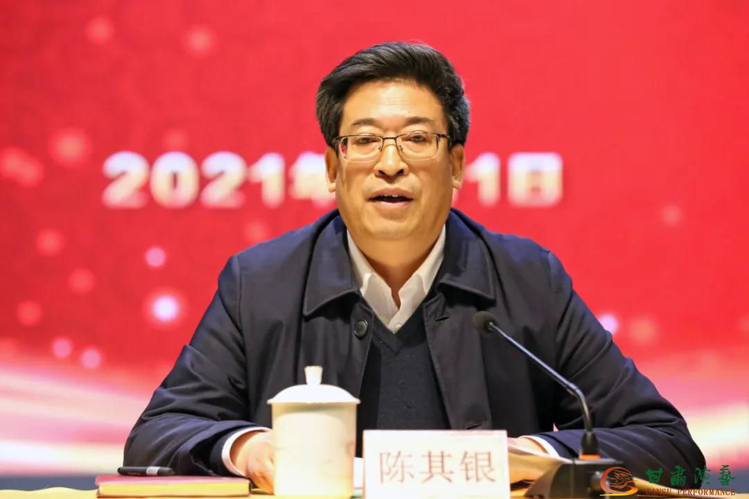 陳其銀在講話中對集團2021年工作提出明確要求:以習近平新時代中國特色社會主義思想為指導,全面貫徹黨的十九大和十九屆二中、三中、四中、五中全會精神,深入貫徹落實習近平總書記對甘肅工作重要講話和指示精神,認真學習貫徹全省宣傳部長會議精神,聚焦舉旗幟、聚民心、育新人、興文化、展形象的使命任務,堅定文化自信,堅持以社會主義核心價值觀引領文化建設,堅持將社會效益放在首位,圍繞慶祝中國共產黨成立100周年,創(chuàng)作生產思想精深、藝術精湛、制作精良的舞臺藝術佳作,唱響“共產黨好”的主旋律,努力做強我省優(yōu)勢藝術門類,成為我省舞臺藝術創(chuàng)作生產的引領者和推動者,不斷滿足人民向往美好生活的精神文化需求,助力推動文化強省建設,為努力譜寫加快建設幸福美好新甘肅、不斷開創(chuàng)富民興隴新局面時代篇章提供堅強思想保證和強大精神力量。