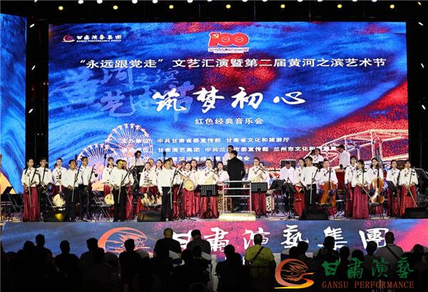 “永遠(yuǎn)跟黨走”文藝匯演暨第二屆黃河之濱藝術(shù)節(jié)7月11日晚在蘭州體育文化廣場拉開帷幕。由甘肅演藝集團(tuán)歌舞劇院排演的大型民族交響音樂會《筑夢?初心》作為開幕演出,吸引各界觀眾約4000余人共聚黃河之濱觀看。