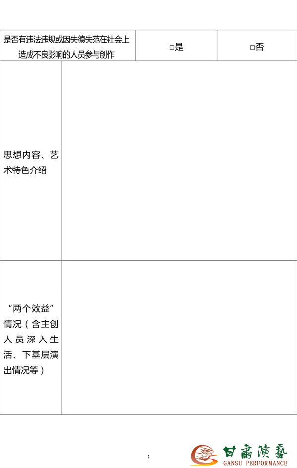 (二)參加終評作品的劇本、節(jié)目單和申報表(加蓋報送單位公章)、能夠佐證演出場次的證明等材料各3份,以紙質文件形式報送,電子版發(fā)送郵箱ysswhj@mct.gov.cn;