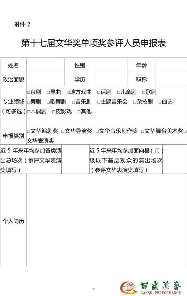 第十七屆文華獎文華單項獎參評人員申報表