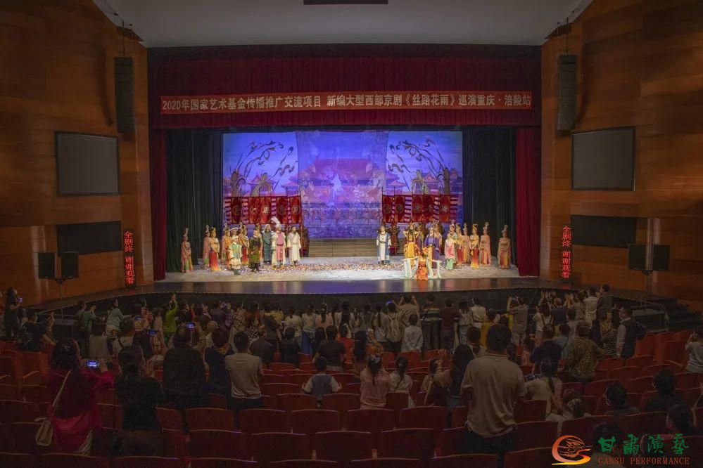 作為國家藝術(shù)基金 2020年度傳播交流推廣資助項目,由甘肅演藝集團敦煌藝術(shù)團傾力打造的大型新編西部京劇《絲路花雨》巡演于5月7日在重慶涪陵大劇院上演,粉墨登場的 “英娘”受到涪陵老百姓們的熱捧。