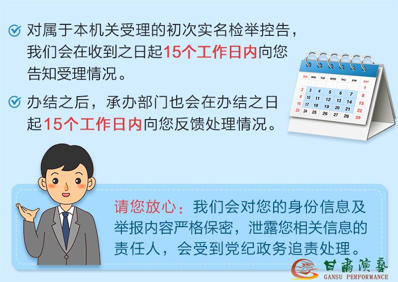 對屬于本機(jī)關(guān)受理的初次實名檢舉控告,我們會在收到之日起15個工作日內(nèi)向您告知受理情況。