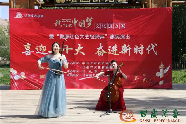 以文藝助力鄉(xiāng)村振興,當(dāng)天,甘肅演藝集團(tuán)歌舞劇院的文藝輕騎兵演出小分隊,將精心編排的演出送到了肅南康樂鎮(zhèn)和紅灣寺鎮(zhèn),為兩地的鄉(xiāng)親們送上精彩的演出,演出富有時代氣息、體現(xiàn)了中華優(yōu)秀傳統(tǒng)文化的內(nèi)涵,弘揚了社會主義核心價值觀,彰顯愛黨、愛國、愛家情懷。節(jié)目形式包含舞蹈、歌曲演唱、器樂演奏,節(jié)目有中國經(jīng)典舞劇《絲路花雨》選段《金光千佛》、女子群舞《凌波》《絲路民族風(fēng)》、女聲獨唱《幸福中國一起走》《鏗鏘玫瑰》、男聲獨唱《平安中國》《山美水美中國美》、大提琴獨奏《莫吉托》、大提琴二胡合奏《名曲聯(lián)奏》、薩克斯獨奏《我心永恒》《春風(fēng)》等,每個節(jié)目都深受現(xiàn)場觀眾喜愛,一個多小時的演出讓現(xiàn)場觀眾近距離的感受到了藝術(shù)的魅力,現(xiàn)場氣氛熱鬧非凡,贏得村民們的陣陣喝彩聲,歡歌笑語飄蕩在村莊上空。23日,演出小分隊將前往肅南大河鄉(xiāng)、明花鄉(xiāng)進(jìn)行演出。