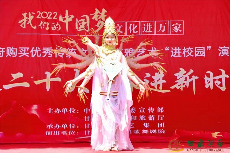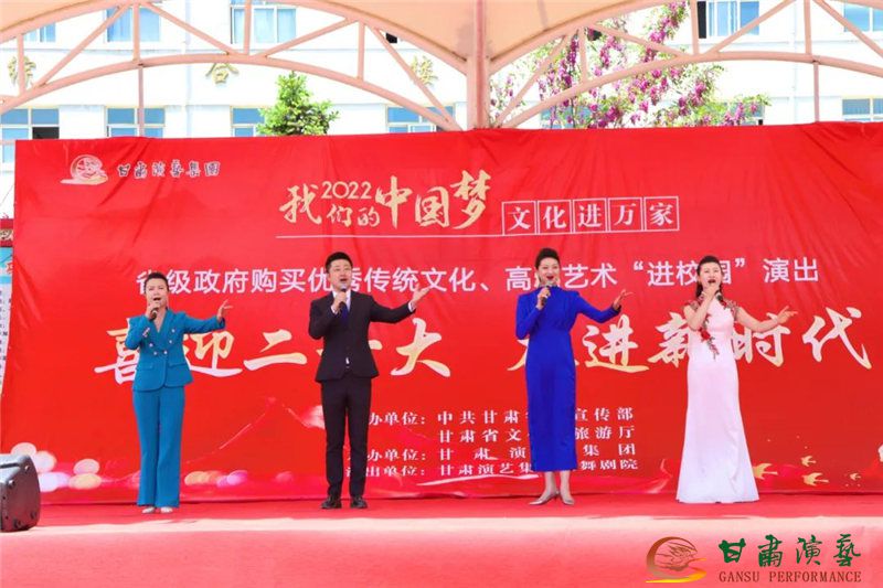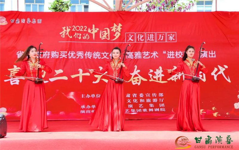 此次“我們的中國(guó)夢(mèng)”——文化進(jìn)萬(wàn)家暨紅色文藝輕騎兵文藝演出的最后一站將代表中華優(yōu)秀傳統(tǒng)文化的不同類別藝術(shù)作品送進(jìn)校園,為赴定西漳縣的演出畫上了圓滿的句號(hào)。本場(chǎng)演出拉近了舞臺(tái)藝術(shù)與青少年的距離,打開(kāi)了一扇近距離感受舞臺(tái)藝術(shù)作品魅力的窗口,激發(fā)了師生對(duì)舞臺(tái)藝術(shù)文化的熱愛(ài),對(duì)豐富校園文化生活、提高孩子們的藝術(shù)審美素養(yǎng)起到了促進(jìn)作用,也增進(jìn)了孩子們對(duì)中華民族傳統(tǒng)文化的認(rèn)同感,得到了學(xué)校領(lǐng)導(dǎo)和師生的廣泛贊譽(yù)和好評(píng)。未來(lái)甘肅演藝集團(tuán)歌舞劇院將一如既往承擔(dān)起“舉旗幟、聚民心、育新人、興文化、展形象”的使命任務(wù),創(chuàng)排更多思想性藝術(shù)性相統(tǒng)一的藝術(shù)作品,讓廣大人民群眾共享文化繁榮成果,培育和踐行社會(huì)主義核心價(jià)值觀,以實(shí)際行動(dòng)迎接黨的二十大和省第十四次黨大會(huì)的勝利召開(kāi)!