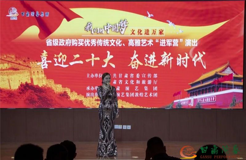 喜迎二十大,奮進(jìn)新時(shí)代,正值中國共產(chǎn)黨甘肅省第十四次黨代會(huì)勝利召開之際,為提升人民群眾的文化獲得感、幸福感,以高質(zhì)量的文化活動(dòng)和藝術(shù)作品滿足人民群眾對(duì)文化生活的新需求、新期待。5月24日-29日,由中共甘肅省委宣傳部、甘肅省文化和旅游廳主辦,甘肅演藝集團(tuán)承辦,甘肅演藝集團(tuán)敦煌藝術(shù)團(tuán)演出的2022“我們的中國夢(mèng)”文化進(jìn)萬家——省級(jí)政府購買優(yōu)秀傳統(tǒng)文化、高雅藝術(shù)“進(jìn)軍營”“進(jìn)企業(yè)”“精品劇目市州巡演”惠民演出,在各市各縣區(qū)委宣傳部的協(xié)助下深入基層單位,把省委省政府關(guān)心基層群眾、關(guān)心人民子弟兵的暖心慰問,以文藝作品演藝的形式送到了社會(huì)各界,受到了基層群眾和部隊(duì)官兵的熱烈歡迎和贊譽(yù)。
