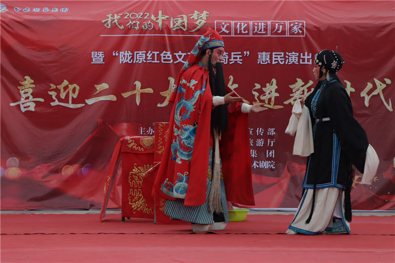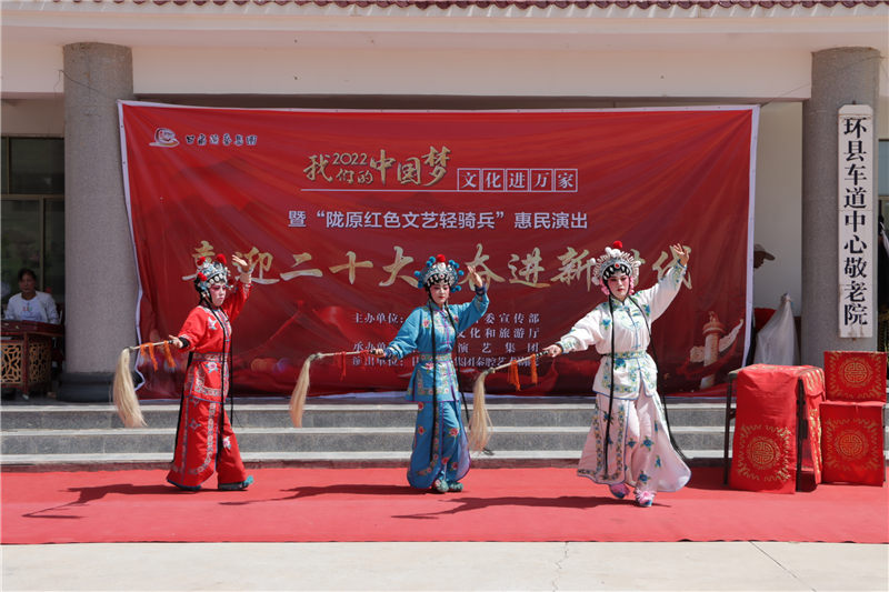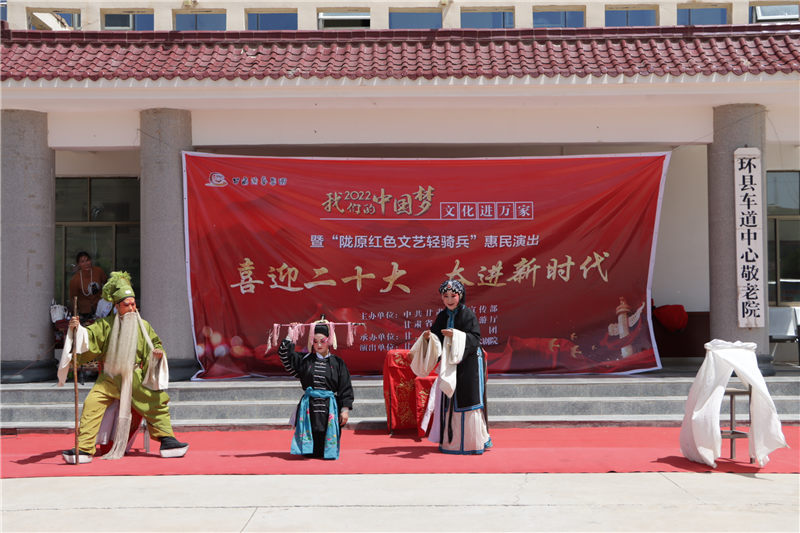2022年6月8日,甘肅演藝集團2022“我們的中國夢”——文化進萬家暨隴原“紅色文藝輕騎兵”秦腔藝術劇院小分隊來到了幫扶點環(huán)縣車道鎮(zhèn),在駐村工作隊的積極銜接下和鎮(zhèn)黨委大力支持下,先是在車道鎮(zhèn)中心敬老院開展了“一行動一活動”關愛老人慰問演出活動,隨后在鎮(zhèn)中心廣場為當?shù)厝罕妭儷I上了精彩紛呈的秦腔折子戲。