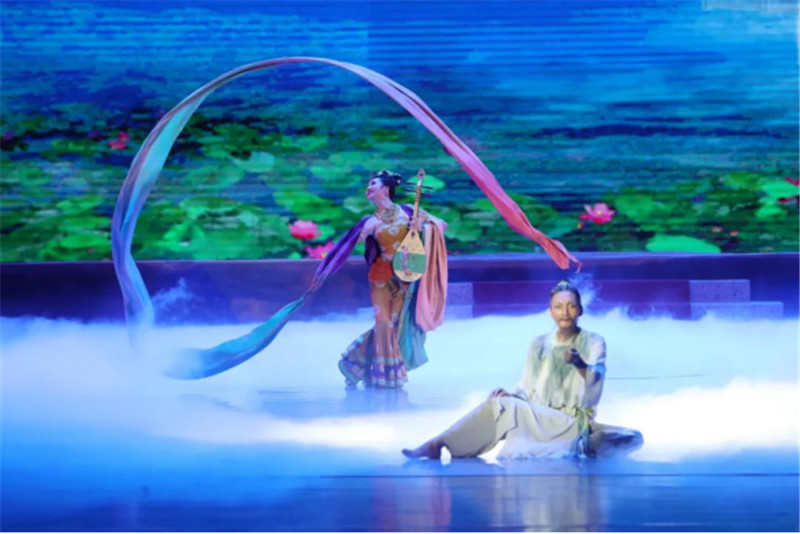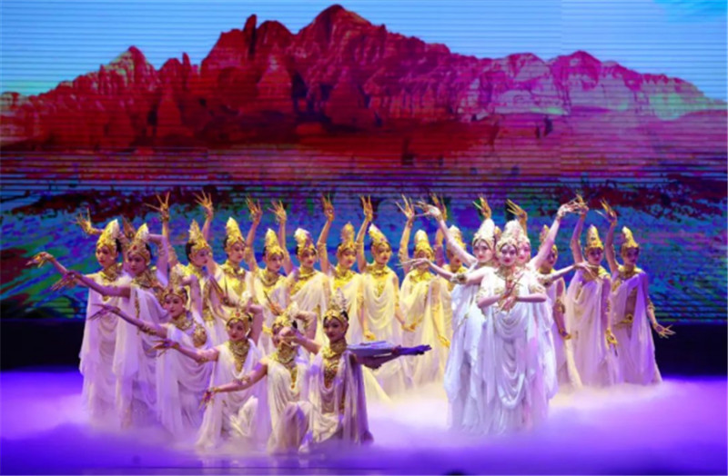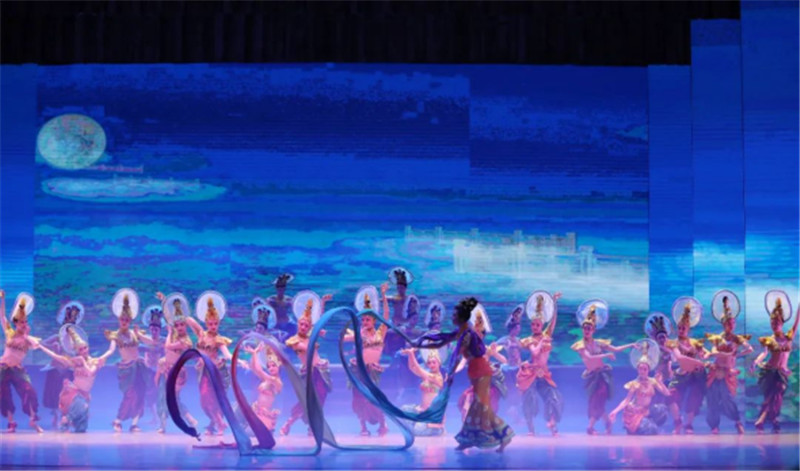6月12日至14日,由甘肅演藝集團(tuán)歌舞劇院創(chuàng)作的舞劇《絲路花雨》三場演出在金川文化宮上演。甘肅演藝集團(tuán)舞美中心提供燈光,音響設(shè)備,LED顯示屏等技術(shù)保障。蕩氣回腸的音樂,各具特色的多民族舞蹈,絲絲入扣的情節(jié),多變的場景設(shè)置……“千手觀音”“反彈琵琶”“霓裳羽衣舞”,深深感染和陶醉著在場的每一位觀眾。隨著劇情的推進(jìn),現(xiàn)場觀眾放飛思緒、穿越時光,重走歷史深處的絲路。劇情引發(fā)了現(xiàn)場觀眾的強(qiáng)烈共鳴,大家用歡呼聲和掌聲表達(dá)著對藝術(shù)與文化的認(rèn)可,精彩的演出也贏得了在場領(lǐng)導(dǎo)和觀眾的一致好評。大家表示,這么多年了再也沒有在劇場看到這么好劇目,尤其是中國經(jīng)典舞劇《絲路花雨》。