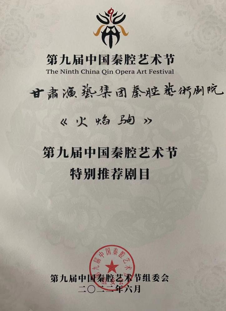 在6月24日落幕的第九屆中國秦腔藝術(shù)節(jié)上,甘肅秦腔藝術(shù)劇院選送劇目《火焰駒》榮獲古典題材類特別推薦劇目、屈效梅榮獲“杰出貢獻(xiàn)藝術(shù)家”、李曉晨榮獲“表演藝術(shù)傳承新星”共三項(xiàng)殊榮,再次確立了劇院在甘肅地區(qū)秦腔表演和傳承的“領(lǐng)頭羊”地位。