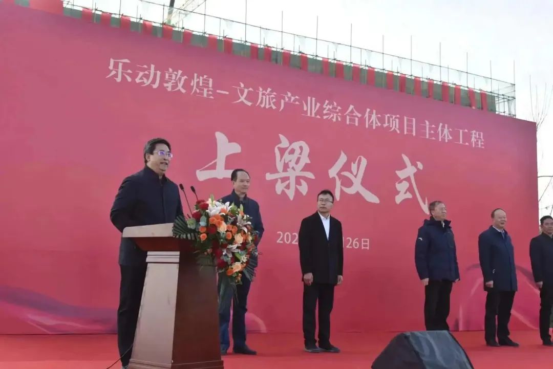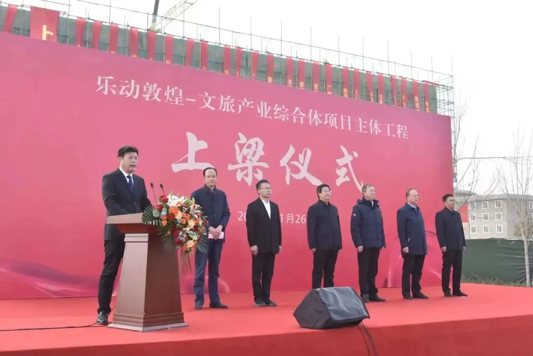 在全黨全國各族人民深入學(xué)習(xí)貫徹黨的二十大精神之際,甘肅演藝集團(tuán)認(rèn)真落實(shí)黨的二十大報告提出“推進(jìn)文化自信自強(qiáng),鑄就社會主義文化新輝煌”總體要求,積極主動履行文化企業(yè)社會責(zé)任,加快推進(jìn)“樂動敦煌—文旅產(chǎn)業(yè)綜合體”項(xiàng)目建設(shè)工作。11月26日,隨著長30米、重37噸的主梁吊裝固定,由甘肅演藝集團(tuán)文旅產(chǎn)業(yè)發(fā)展有限公司與敦煌新絲路文化旅游發(fā)展有限公司共同出資組建的樂動敦煌(敦煌)文化旅游產(chǎn)業(yè)發(fā)展有限公司籌建的“樂動敦煌-文旅產(chǎn)業(yè)綜合體”項(xiàng)目劇場主體工程成功“上梁”,標(biāo)志著項(xiàng)目整體建設(shè)邁進(jìn)一個新的階段。酒泉市委常委、敦煌市委書記石琳,甘肅演藝集團(tuán)黨委書記、董事長陳其銀、黨委副書記、總經(jīng)理劉小承,以及敦煌市和甘肅演藝集團(tuán)相關(guān)人員參加了本次儀式。
