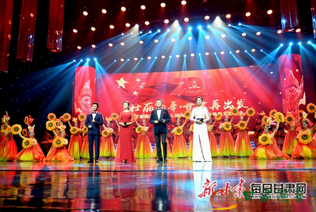 新甘肅客戶(hù)端蘭州訊(新甘肅·每日甘肅網(wǎng)記者金奉乾 實(shí)習(xí)生王飛)70年風(fēng)雨兼程,70載春華秋實(shí)。9月28日晚8時(shí),由甘肅省委宣傳部、甘肅省文旅廳主辦,甘肅演藝集團(tuán)承辦的“壯麗70年·甘肅再出發(fā)”甘肅省慶祝中華人民共和國(guó)成立70周年文藝晚會(huì)在甘肅大劇院精彩上演。省委、省人大、省政府、省政協(xié)主要領(lǐng)導(dǎo)和社會(huì)各界群眾代表一起觀看了演出。