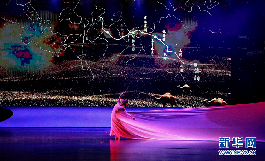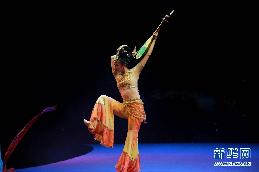演員在《長(zhǎng)綢舞·反彈琵琶》中表演。新華網(wǎng)發(fā)(劉欣瑜 攝)