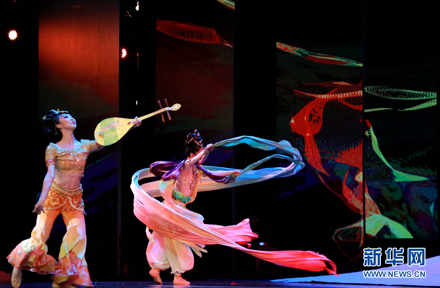 圖為舞蹈《長(zhǎng)綢舞·反彈琵琶》中的一幕。新華網(wǎng)發(fā)(劉欣瑜 攝)