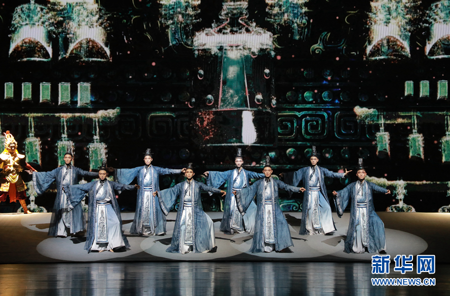 演員在《相約千年》中表演群舞《編鐘鼓樂(lè)》。新華網(wǎng)發(fā)(劉欣瑜 攝)