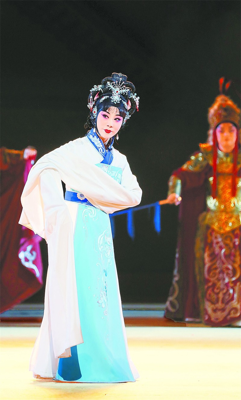 但凡愛“折騰”的藝術(shù)家,在創(chuàng)作上往往顯現(xiàn)出超乎常人的主動性。從《鎖麟囊》到《蔡文姬》,蘇鳳麗在確立了藝術(shù)目標(biāo)之后,就會癡迷地去琢磨它,追求更加完美的結(jié)果。所以,在舞臺上展現(xiàn)出驚艷奪目的華彩篇章,實(shí)在順理成章。讓我印象最深的是《蔡文姬》之第五場,歸漢的蔡文姬覺得有負(fù)丞相厚望又難忍閑言冷語,情緒低落的她忽聞夫君左賢王的死訊……一個揪心的琴弦驟然而起,引出蔡文姬“一聲夫君吐出唇”的大段唱腔。它由漸板起,轉(zhuǎn)入二導(dǎo)板……唱腔旋律在時緊時慢、時高時低、時斷時續(xù)的遷延與轉(zhuǎn)換中,不禁引起觀眾的深切共情。蘇鳳麗以她的聲腔塑造了蔡文姬的形象,一字一腔,一嘆一息,就像從心底里摳出來一樣,音域行走在云端,始終不失蔡文姬身份和性格,堪稱彩腔苦音運(yùn)用于角色性格的范例。