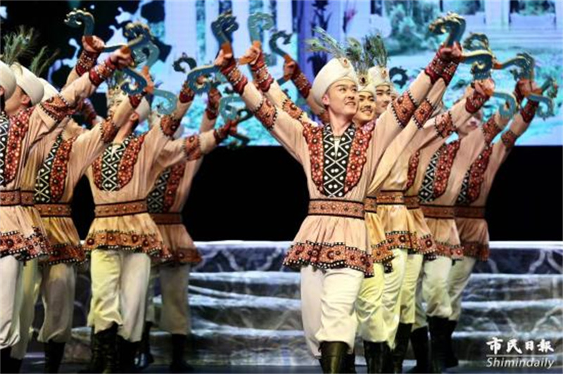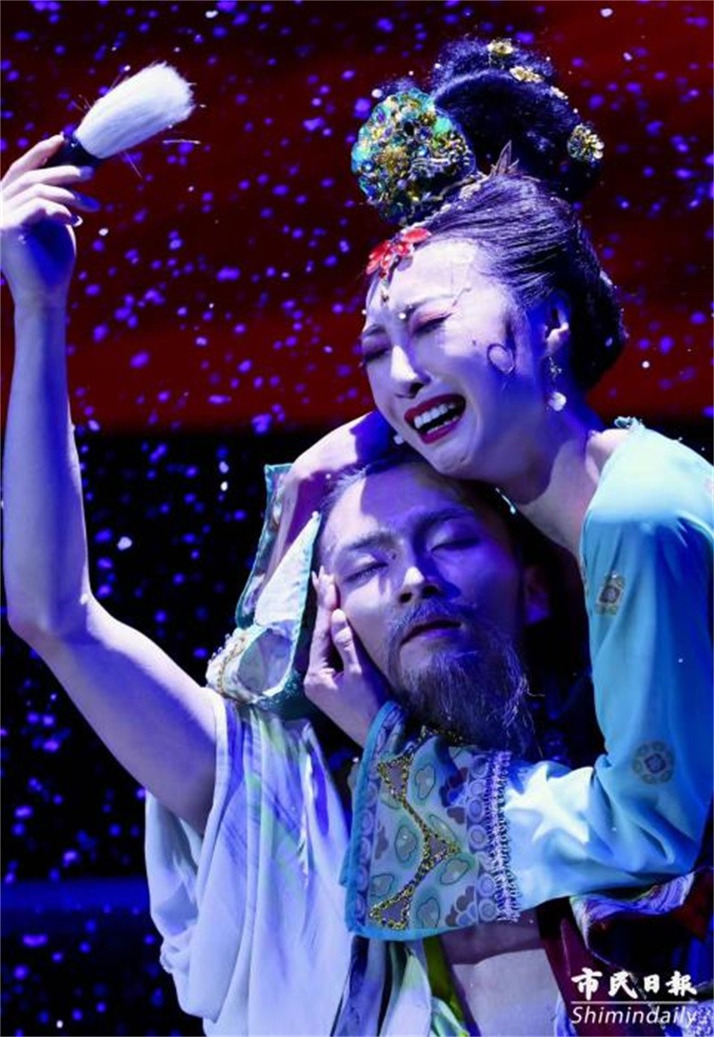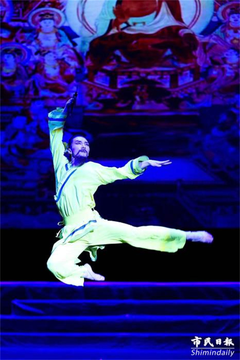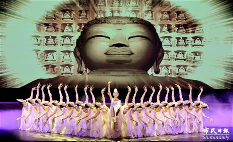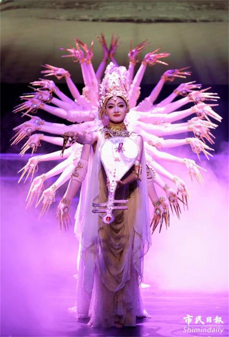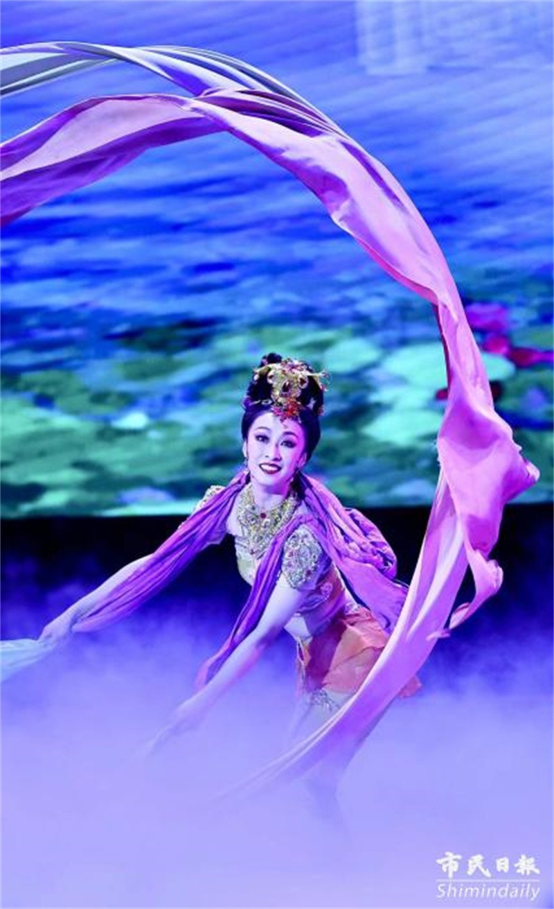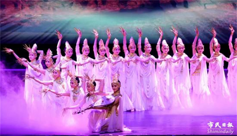 中國古典舞、印度舞、黑巾舞、波斯馬鈴舞、波斯酒舞、土耳其舞、盤上舞、新疆舞......當(dāng)晚,被譽為?“活的敦煌壁畫,美的藝術(shù)享受”的舞劇《絲路花雨》融?“一帶一路”沿線國家和地區(qū)民間歌舞于一身,以大氣唯美的布景、絢麗多彩的舞蹈、極富張力的演繹、跌宕起伏的情節(jié),讓現(xiàn)場1500多名觀眾穿越時空,彷佛走進古絲綢之路的歷史畫卷中,如癡如醉。?“千手觀音”?“反彈琵琶”?“蓮花童子舞”?“霓裳羽衣舞”......出自100多幅敦煌壁畫中的敦煌舞姿,婀娜蹁躚、獨特唯美、如夢如幻,令人拍案叫絕。