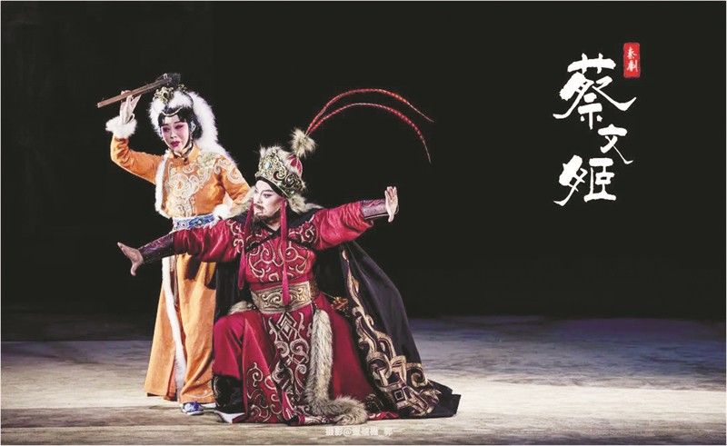 “文姬歸漢”的故事可謂家喻戶曉。以郭沫若編劇、焦菊隱導(dǎo)演的話劇《蔡文姬》為代表,此題材的舞臺(tái)創(chuàng)作也非常多。當(dāng)我們從中感受到文化凝聚的力量鼓蕩于歷史敘事之際,蔡文姬同時(shí)作為文學(xué)家、史學(xué)家和在戰(zhàn)亂中命運(yùn)顛沛流離的個(gè)體身份,不可避免也持久地引人發(fā)問(wèn):她是一個(gè)什么樣的人?如果說(shuō)賦予歷史意義是史學(xué)家的本能,那么撥開(kāi)歷史而進(jìn)入到具體個(gè)體的命運(yùn)處境當(dāng)中,我們或許可以得出答案:一方面,她是一個(gè)女性,是妻子、母親和女兒,是漢末社會(huì)倫理關(guān)系中微妙生動(dòng)又富有溫度的一個(gè)人,而“家”則成為歸集其身份情感的最大執(zhí)念;另一方面,她是一個(gè)知識(shí)分子,她博聞強(qiáng)記、聰慧多才,無(wú)論是家學(xué)淵源還是個(gè)人抱負(fù),都讓她必然秉承強(qiáng)烈的歷史責(zé)任感和文化使命感,使個(gè)體的情感執(zhí)念向民族凝聚團(tuán)結(jié)的主題升華。秦腔《蔡文姬》的新穎發(fā)現(xiàn)在于,它在蔡文姬于戰(zhàn)火離亂、顛沛流離而靈魂難以安放的處境中,找到了她多重身份互為表里、牽扯映襯,又極富張力、極具代表性的精神寄托,即親自重撰其父蔡邕的史學(xué)著作《漢記》。這里隱約能看到某些前人走過(guò)的痕跡,但對(duì)于秦腔《蔡文姬》來(lái)說(shuō),那觸動(dòng)人靈魂的自我救贖,卻讓人眼前一亮。