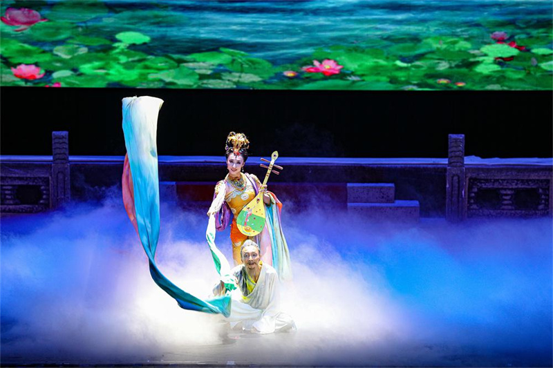 中國古典舞、印度舞、黑巾舞、波斯馬鈴舞、波斯酒舞 ...... 當晚,融 " 一帶一路 " 沿線國家和地區(qū)民間歌舞于一身的舞劇《絲路花雨》,以大氣唯美的布景、絢麗多彩的舞蹈、極富張力的演繹、跌宕起伏的情節(jié),讓現場近 2000 多名觀眾穿越時空,仿佛走進古絲綢之路的歷史畫卷中,如癡如醉。" 千手觀音 "" 反彈琵琶 "" 蓮花童子舞 "" 霓裳羽衣舞 "...... 出自 100 多幅敦煌壁畫中的敦煌舞姿,婀娜蹁躚、獨特唯美、如夢如幻,令人拍案叫絕。