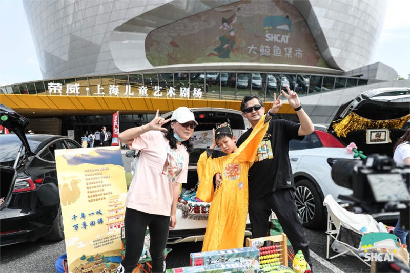 最讓小朋友驚喜的,當(dāng)屬大鯨魚品牌活動(dòng)后備箱集市。5月2日上午,“西游敦煌”大鯨魚親子后備箱集市火熱開市,百余組家庭打開自己的后備箱,現(xiàn)場(chǎng)還原了“絲綢之路”上的人聲鼎沸。而這樣場(chǎng)景化的深度體驗(yàn),也將提升小觀眾的創(chuàng)意表達(dá)與文化理解,使他們?cè)谂c敦煌文化的對(duì)話中領(lǐng)略歷史魅力、樹立文化自信、傳承傳統(tǒng)文化精華。