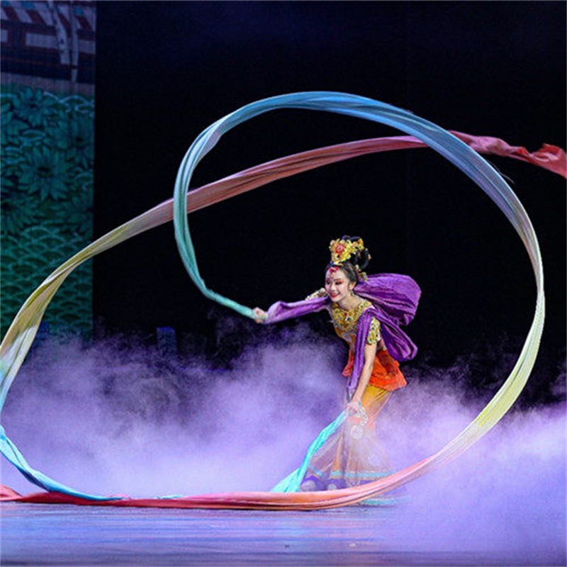 此舞只應(yīng)天上有,人間難得看幾回。舞劇《絲路花雨》是甘肅省歌舞劇院以舉世聞名的敦煌壁畫(huà)和絲綢之路為題材,以和平、友誼為主題,通過(guò)敦煌畫(huà)工“神筆張”和女兒“英娘”與波斯商人“依努斯”患難與共、生死相交的故事,以別具一格的藝術(shù)風(fēng)格,將瑰麗多彩的敦煌壁畫(huà)搬上舞臺(tái),藝術(shù)再現(xiàn)了敦煌文化的博大精深,贊美了勞動(dòng)人民創(chuàng)造敦煌文化的光輝形象,歌頌了古絲綢之路中外各族人民友好往來(lái)、民心相通的動(dòng)人故事。舞劇《絲路花雨》博采“一帶一路”沿線國(guó)家和地區(qū)民間歌舞,融合了中國(guó)古典舞、印度舞、黑巾舞、波斯馬鈴舞、波斯酒舞、土耳其舞、盤(pán)上舞、新疆舞等舞蹈藝術(shù)形式。