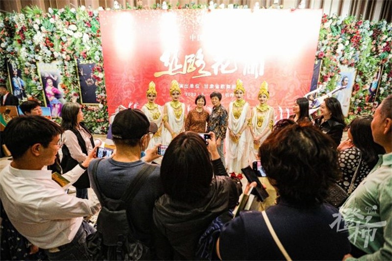 絲路花雨舞動(dòng)人間天堂,如意甘肅閃耀之江大地。5月14日晚,在杭州西湖之畔的蝴蝶劇場(chǎng),由甘肅省文化和旅游廳主辦,甘肅演藝集團(tuán)承辦,甘肅省歌舞劇院演出的經(jīng)典舞劇《絲路花雨》文化交流演出精彩上演。劇場(chǎng)內(nèi)曼妙的舞姿,悠揚(yáng)的鼓樂(lè),動(dòng)人的故事,讓古老的敦煌文化印入人心;劇場(chǎng)外精美的圖片,別致的陳列,熱情的宣傳,全面展示隴原大地的多彩畫(huà)卷。