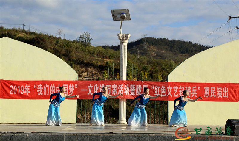 即將完成秋冬季節(jié)交替的美好11月,隴南徽縣大地多個鄉(xiāng)鎮(zhèn)喜氣洋洋,甘肅演藝集團歌舞劇院2019年“我們的中國夢”文化進萬家活動暨隴原“紅色文藝輕騎兵”惠民演出一連幾日在此激情登場,用深接地氣、緊貼民心、積極昂揚的優(yōu)秀歌舞類綜合節(jié)目,謳歌祖國、贊美時代、暢想未來,為當?shù)鼗鶎尤罕娝蜕狭擞鋹傌S盛的文化大餐,將新時代文藝院團“舉旗幟、聚民心、育新人、興文化、展形象”的光輝使命化為看得見的行動、聽得見的心聲。