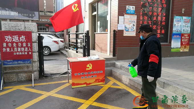 防控就是責(zé)任,崗位就是戰(zhàn)場。疫情發(fā)生以來,甘肅演藝集團(tuán)話劇院黨總支率先成立了黨員先鋒聯(lián)控崗,充分發(fā)揮黨組織的戰(zhàn)斗堡壘作用。話劇院全體黨員積極參與,主動放棄休息,響應(yīng)公共應(yīng)急防疫工作的倡議,為劇院住戶的生命安全和身體健康站崗值班,為不漏細(xì)查摸排外來流動人員的防控,話劇院三次改進(jìn)第一道大門黨員先鋒崗的值班點(diǎn),做到規(guī)范、科學(xué)合理的安排,做好聯(lián)防聯(lián)控。同時(shí),黨員模范先鋒崗制定出符合話劇院實(shí)際情況的防控疫情值班人員須知,除了進(jìn)出門登記、測量體溫、給進(jìn)們?nèi)藛T手部進(jìn)行消毒、廣播播報(bào)抗疫情要求外,還嚴(yán)格每天對劇院進(jìn)行6次消毒工作。從甘話工作微信群中看到幾個(gè)身體纖細(xì)的女黨員同志們,提起裝有消毒水的中號水桶消毒時(shí),她們說:“內(nèi)心住著一個(gè)女漢子”。話劇院黨員同志們?nèi)硇牡赝度氲娇箵粢咔榈墓ぷ髦?,保證了話劇院每一位同志、住戶的生命安全和身體健康。話劇院全體黨員用擔(dān)重任、扛大旗的精神和作為,詮釋著“先鋒模范榜樣”的風(fēng)貌。