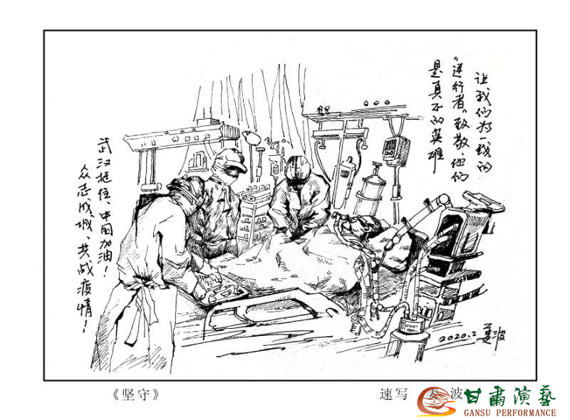 疫情防控阻擊戰(zhàn)在全國打響后,話劇院文藝工作者攜手并肩、各展所長,通過詩朗誦、工筆畫、速寫等藝術(shù)形式,線上線下聚焦一線踴躍創(chuàng)作。話劇院國家一級舞美設(shè)計(jì)師姜波創(chuàng)作的《爭分奪秒》《堅(jiān)守》《云開霧散》速寫作品,為打贏疫情防控阻擊戰(zhàn)傳遞正能量。 (圖/文由甘肅省話劇院提供)