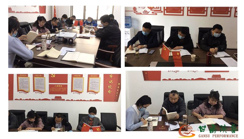 4月15日(星期三)上午,甘肅演藝集團(tuán)演出公司、舞美中心黨支部,按照年度制定的黨員及入黨積極分子固定每周三集中學(xué)習(xí)的計(jì)劃,召開了2020年黨員及入黨積極分子第六次集中政治理論學(xué)習(xí)并傳達(dá)學(xué)習(xí)了集團(tuán)黨委近期下發(fā)的文件通知精神。會(huì)議由黨支部副書記黃濤同志主持,舞美中心副主任杜強(qiáng)、演出公司副總經(jīng)理馬臨軍、全體黨員及入黨積極分子參加了此次學(xué)習(xí),會(huì)上重點(diǎn)強(qiáng)調(diào)要深入學(xué)習(xí)貫徹習(xí)近平新時(shí)代中國(guó)特色社會(huì)主義思想,進(jìn)一步樹牢“四個(gè)意識(shí)”、增強(qiáng)“四個(gè)自信”、堅(jiān)決做到“兩個(gè)維護(hù)”。在當(dāng)前新型冠狀肺炎疫情以“外防為主”的前提下,甘肅演藝集團(tuán)演出公司積極推進(jìn)復(fù)工復(fù)產(chǎn)相關(guān)準(zhǔn)備工作,緊密結(jié)合集團(tuán)2020年度雙效考核目標(biāo)責(zé)任書中有關(guān)企業(yè)管理的具體要求,就產(chǎn)業(yè)運(yùn)營(yíng)和發(fā)展等深化改革問題的情況,積極推進(jìn)公司化改制和高效扁平化企業(yè)管理組織架構(gòu),結(jié)合公司實(shí)際情況,高標(biāo)準(zhǔn)高質(zhì)量開展集中政治理論學(xué)習(xí),不斷推動(dòng)甘肅演藝集團(tuán)演出公司、舞美中心的各項(xiàng)工作再上新的臺(tái)階。