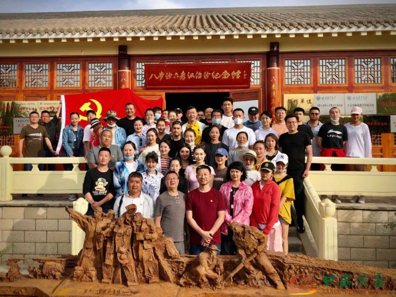 演出結(jié)束后,為了紀(jì)念特殊的時(shí)刻,甘肅演藝集團(tuán)敦煌藝術(shù)團(tuán)黨總支又組織所有黨員和全體演職人員前往古浪縣八步沙林場,參觀了八步沙六老漢治沙紀(jì)念館。以別樣的形式為自己的“生日”慶祝。大家來到紀(jì)念館,被大門及兩側(cè)立柱上懸掛的三副對(duì)聯(lián)所深深吸引——“六老漢,三代人,生命還原綠色;八步沙,數(shù)十載,青春鎖住黃龍?!?“一腔熱血,縛黃龍,造人間勝境;兩手老繭,栽綠樹,繪古浪宏圖?!?“當(dāng)代愚公,心凝大漠追紅日;英雄群體,意貫荒原變綠洲。”文字言簡意賅,意境悠遠(yuǎn)。進(jìn)入紀(jì)念館,大家一邊認(rèn)真聆聽著講解員的講解,一邊仔細(xì)觀看展館內(nèi)的大量圖片、實(shí)物、影視、蠟像等,感受八步沙六老漢三代人情系家園、艱苦奮斗的創(chuàng)業(yè)精神以及接續(xù)奮斗、久久為功的堅(jiān)定信念。整個(gè)展覽,就是八步沙六老漢三代人前赴后繼、矢志不渝同沙海較量的縮影,是一幕幕戰(zhàn)天斗地的英雄往事,是一曲曲感天動(dòng)地的時(shí)代壯歌,是一個(gè)個(gè)令人敬佩的先進(jìn)典型。沿著紀(jì)念館“遺夢(mèng)、尋夢(mèng)、追夢(mèng)、筑夢(mèng)、圓夢(mèng)”的時(shí)間軸,回望過去,感慨現(xiàn)在,從凝聚著八步沙三代愚公激情與悲壯、成就與輝煌的感人事跡中,深深感受到他們堅(jiān)守與奮斗的壯舉,深切領(lǐng)悟到他們信念與意志的傳奇。