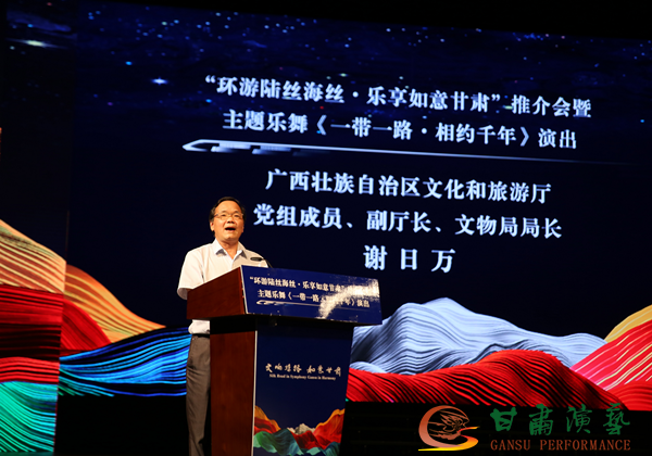 陳衛(wèi)中在致辭中指出,甘肅與廣西、重慶、四川等兄弟省份同屬“一帶一路”和陸海新通道建設(shè)的重要節(jié)點(diǎn)。繼甘肅文旅“環(huán)西部火車游”旅游專列“1+5”跨省推廣營(yíng)銷活動(dòng)后,我們乘勢(shì)而上深入廣西等地開展“聯(lián)合打造環(huán)西部火車游”品牌交流座談、隴桂文旅合作簽約和考察學(xué)習(xí)、主題推介演出等系列活動(dòng),就是要以“環(huán)西部火車游”等跨區(qū)域王牌旅游產(chǎn)品為紐帶拓展合作領(lǐng)域,進(jìn)一步聯(lián)通陸絲海絲大通道,合力助推經(jīng)濟(jì)“雙循環(huán)”。陳衛(wèi)中講到,我們秉承“絲路精神”以舞臺(tái)藝術(shù)精品為媒介,面向八桂大地父老鄉(xiāng)親帶來文藝盛宴,旨在促進(jìn)文化交流互鑒,推進(jìn)民心相通,誠(chéng)摯邀請(qǐng)各界朋友沿著張騫“鑿空之旅”、鄭和“揚(yáng)帆出?!钡膫ゴ笞阚E,乘坐“環(huán)西部火車游”旅游專列穿越大半個(gè)中國(guó)到甘肅到邊疆,一起相約奏響海絲陸絲牽手大合唱的輝煌樂章。