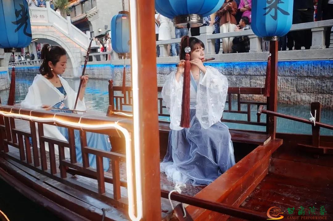 已經(jīng)在蘭州老街水上市集開(kāi)幕后前來(lái)打卡的朋友,或許都已在街區(qū)四大世界和拂云樓下的飛天廣場(chǎng)觀看過(guò)甘肅演藝集團(tuán)敦煌藝術(shù)團(tuán)與蘭州老街為大家準(zhǔn)備的精彩演繹,神形兼?zhèn)涞亩鼗臀?、傳承?jīng)典的蘭州鼓子、嘆為觀止的民間雜耍、潮韻對(duì)撞的現(xiàn)代爵士、余音繞梁的箏弦和鳴等等。