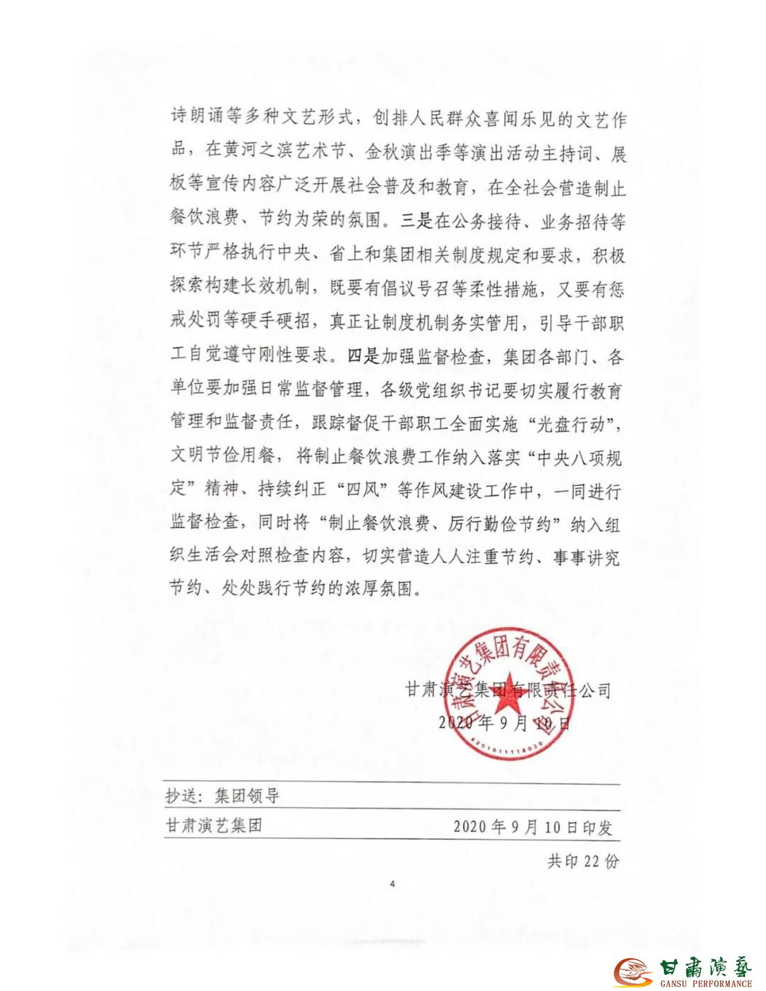 甘肅演藝集團關(guān)于開展制止餐飲浪費行為工作的通知