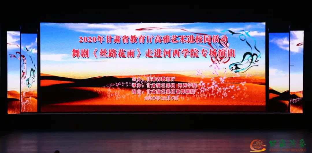 絲路延綿,悠悠千年。12月4日,由甘肅省教育廳主辦,甘肅演藝集團(tuán)承辦的2020年“甘肅省教育廳高雅藝術(shù)進(jìn)校園”活動(dòng)來到了位于絲綢之路重要節(jié)點(diǎn)城市張掖的河西學(xué)院,甘肅演藝集團(tuán)歌舞劇院的演員們用一臺(tái)中國(guó)經(jīng)典舞劇《絲路花雨》帶領(lǐng)師生重走千年絲路,品味絲路傳奇。