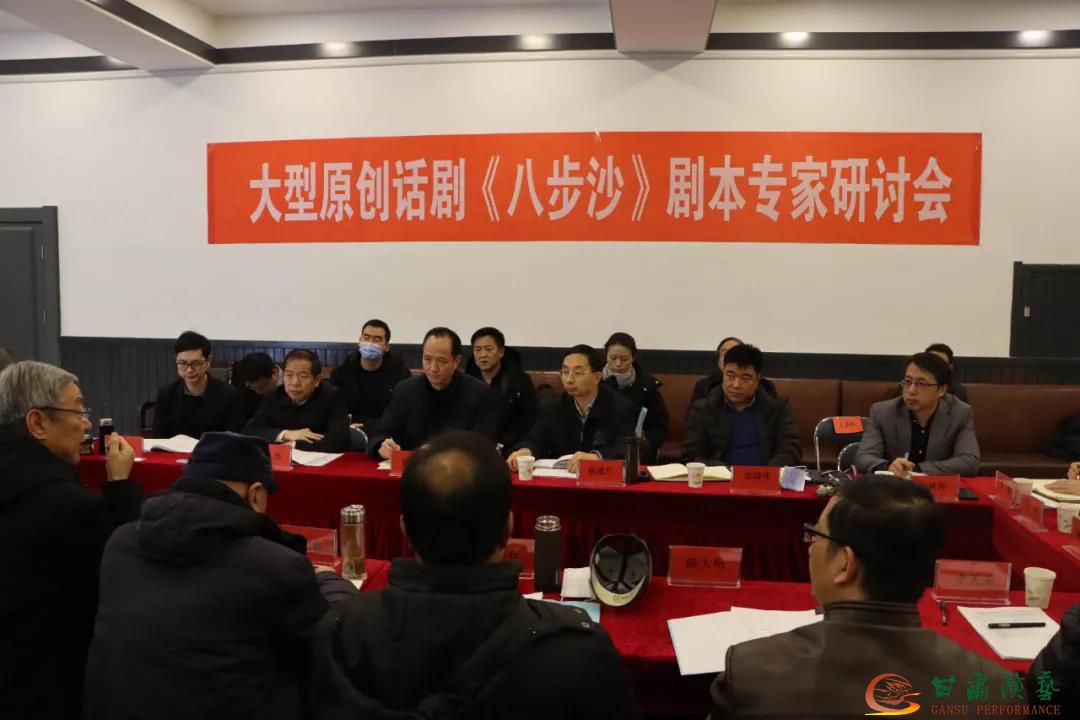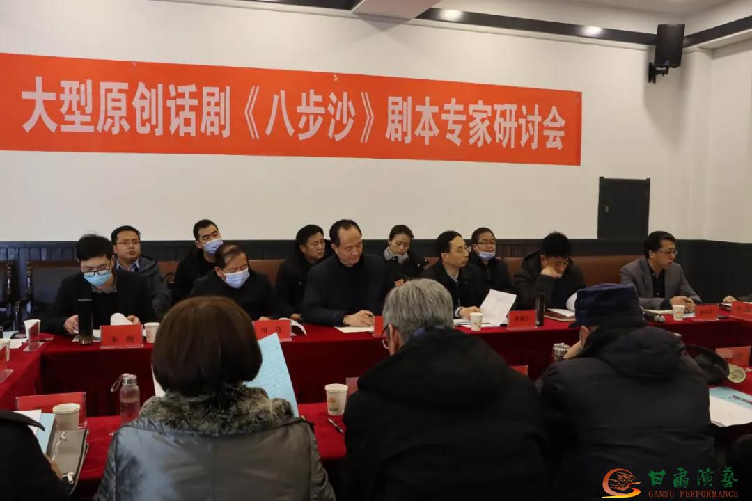 為認(rèn)真貫徹黨的十九大精神,十九屆二中、三中、四中、五中全會(huì)和習(xí)近平總書記對(duì)甘肅重要講話和指示精神,大力弘揚(yáng)“時(shí)代楷?!薄渫爬税瞬缴沉謭?chǎng)“六老漢”三代人治沙造林群體,在困難面前不低頭、敢把沙漠變綠洲的當(dāng)代“愚公”精神,著力推動(dòng)我省藝術(shù)創(chuàng)作出精品、攀“高峰”的時(shí)代使命。2021年1月6日下午,省文化和旅游廳、甘肅演藝集團(tuán)在甘肅演藝集團(tuán)話劇院,組織召開了話劇《八步沙》劇本研討會(huì)。甘肅演藝集團(tuán)黨委副書記、總經(jīng)理劉小承,甘肅省文化和旅游廳副廳長(zhǎng)楊建仁,甘肅演藝集團(tuán)副總經(jīng)理張國(guó)偉等領(lǐng)導(dǎo)出席研討會(huì),省委宣傳部、省文化和旅游廳有關(guān)處室、武威市委宣傳部、市文體廣電和旅游局、古浪縣委宣傳部、古浪縣文體廣電和旅游局負(fù)責(zé)人,以及省內(nèi)外戲劇界專家、話劇《八步沙》主創(chuàng)團(tuán)隊(duì)、甘肅演藝集團(tuán)話劇院領(lǐng)導(dǎo)班子以及新聞媒體記者共40余人參加了研討會(huì)。