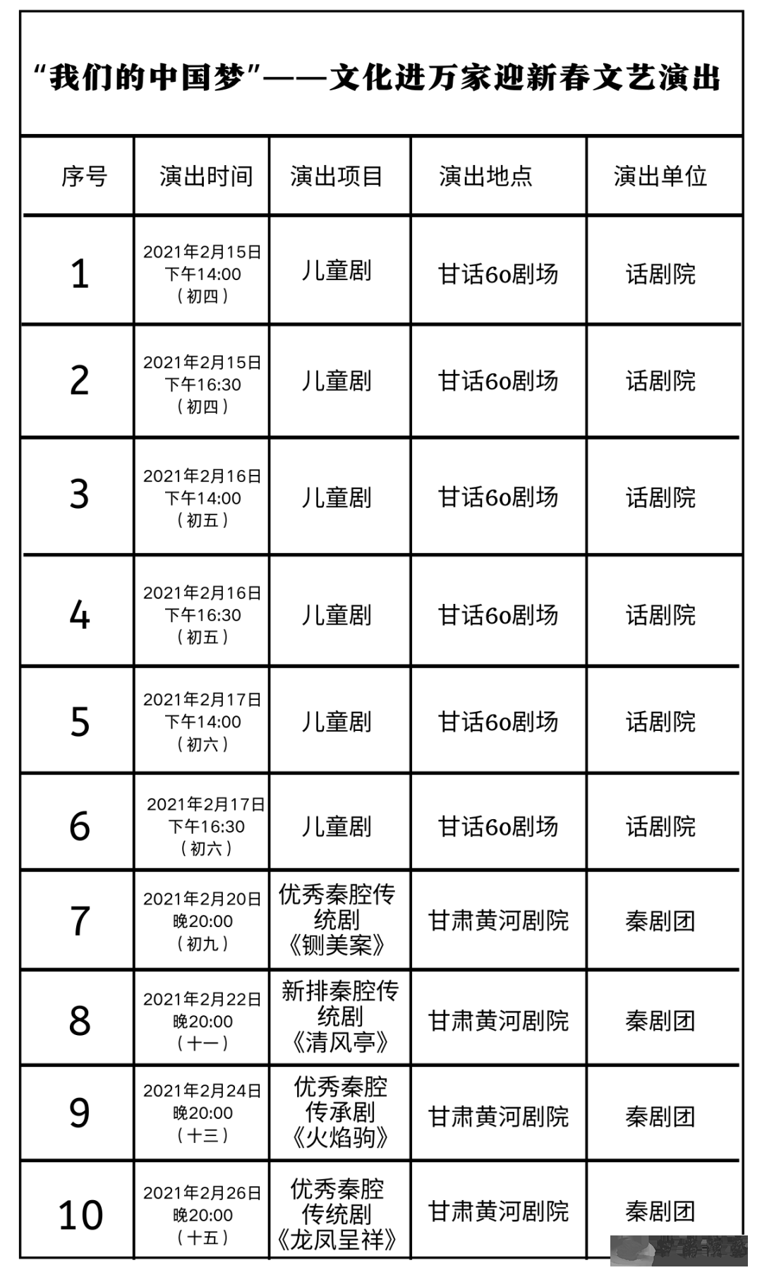 令人期待的是,從正月初二至初六,在蘭州市城關區(qū)近水廣場,每天下午兩點到五點,演出三個小時綜藝類節(jié)目,陪在蘭過年的朋友們一起度過這個難忘的春節(jié)。