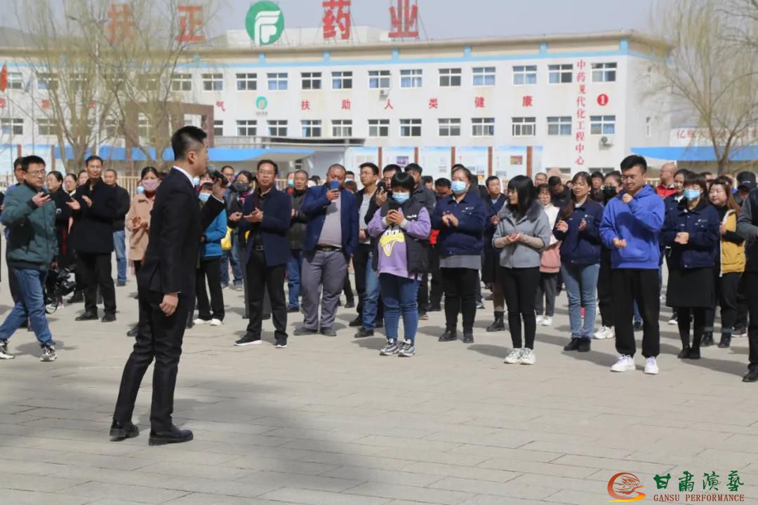 前往定西的演出小分隊到達(dá)定西后,立即來到首場演出現(xiàn)場——甘肅扶正藥業(yè)科技股份有限公司,全體演職人員齊心協(xié)力,立刻參與到演出場地布置、舞美道具及音響擺放等準(zhǔn)備工作中。隨后,一臺精心創(chuàng)排的綜藝節(jié)目,讓現(xiàn)場觀眾眼前一亮,中國經(jīng)典舞劇《絲路花雨》選段《金光千佛》蘊(yùn)含傳統(tǒng)之美;表現(xiàn)民族團(tuán)結(jié)的舞蹈《民族大聯(lián)歡》描畫出新時代老百姓的新生活;歌曲《幸福的時光》《平安中國》《少年》《不忘初心》等唱出了我們對祖國和黨的崇敬與祝福;薩克斯、笛子、板胡、京胡等樂器演奏更是讓觀眾大呼過癮。臺上,表演精彩,臺下,觀眾入迷 ,搭建在老百姓家門口的舞臺,將歡樂送到了老鄉(xiāng)身邊,將文化播種在了群眾心田。