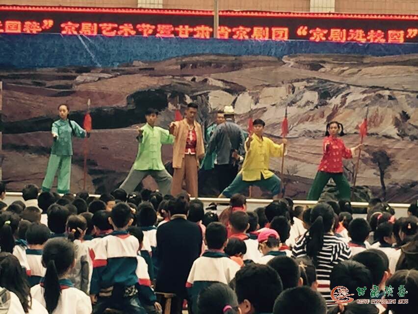 為使同學(xué)們親近國(guó)粹,近距離感受傳統(tǒng)文化的魅力。10月23日下午,甘肅省京劇院兒童京劇《雞毛信》劇組赴蘭州市嘉峪關(guān)路小學(xué)演出。演出正在進(jìn)行中。