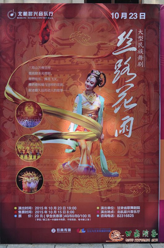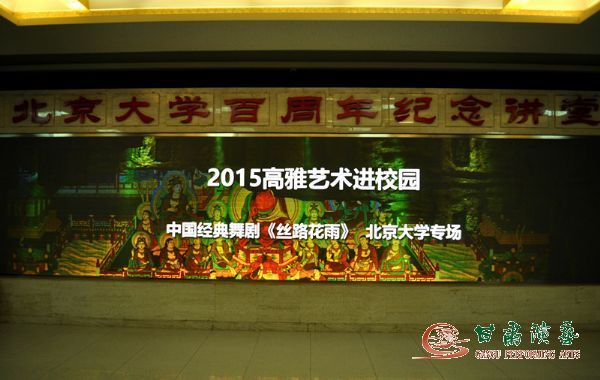 2015年10月19日-25日,甘肅省歌劇院攜中國經(jīng)典舞劇《絲路花雨》走進中國戲曲學院、北京物資學院、北京大學、北京航空航航天大學、天津大學等5所大學,為京、津兩地高校送上了一場視覺盛宴,得到了廣大師生的熱烈的歡迎和一致好評!