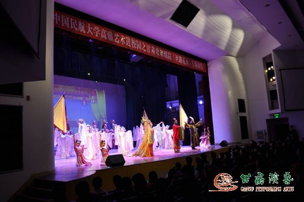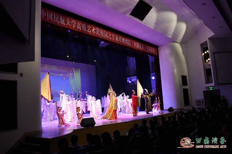 由教育部、文化部、財(cái)政部、主辦的“2015高雅藝術(shù)進(jìn)校園”之甘肅省歌舞劇院經(jīng)典舞劇《絲路花雨》演出活動于10月25日—11月3日走進(jìn)了天津大學(xué)、中國民航大學(xué)、天津理工大學(xué)等三大院校。演出時,整個劇場鼓掌聲、叫好聲不絕于耳,演出非常成功,得到廣大師生一致好評。演出結(jié)束以后,不少同學(xué)與觀眾上臺獻(xiàn)花并要求與演員合影留念!